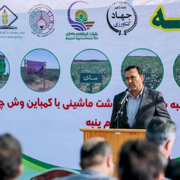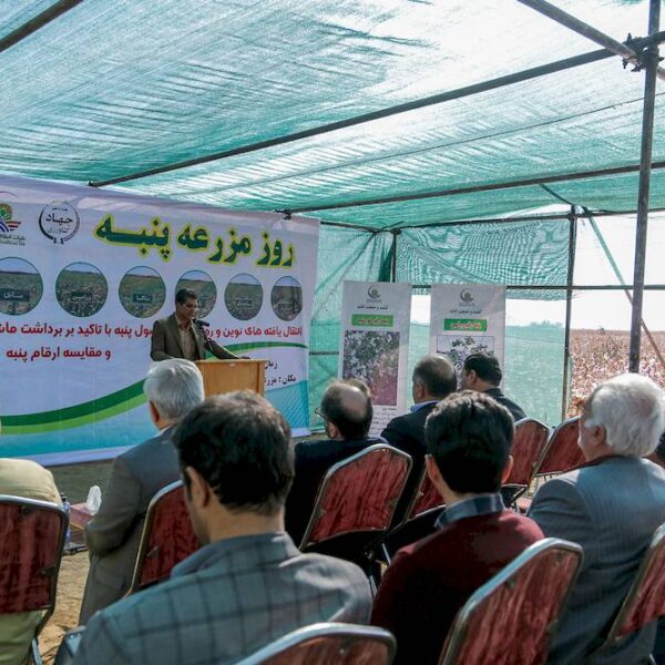 نشست مدیران و فعالان صنعت پنبه کشور به مناسبت روز مزرعه پنبه به میزبانی شرکت کشاورزی رضوی با موضوع انتقال یافتههای تحقیقاتی پنبه با رویکرد برداشت مکانیزه دستگاه کمباین وشچین روز دوشنبه ۳۰ آبان ۱۴۰۱ در مزرعه کشت و صنعت انابد شهرستان بردسکن برگزار شد.